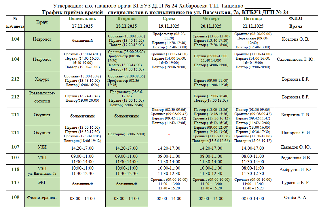 Посмотреть расписание и записаться на приём к врачу: https://uslugi27.ru/